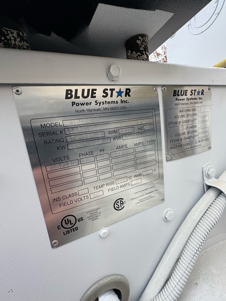 Vehicle Inquiry for 2021 Generators Base BLUE STAR 40KW STANDBY GENERATOR